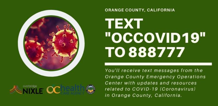 Sign-up for Text Message COVID-19 Updates, you will receive text messages from the Orange County Emergency operations center with updates.