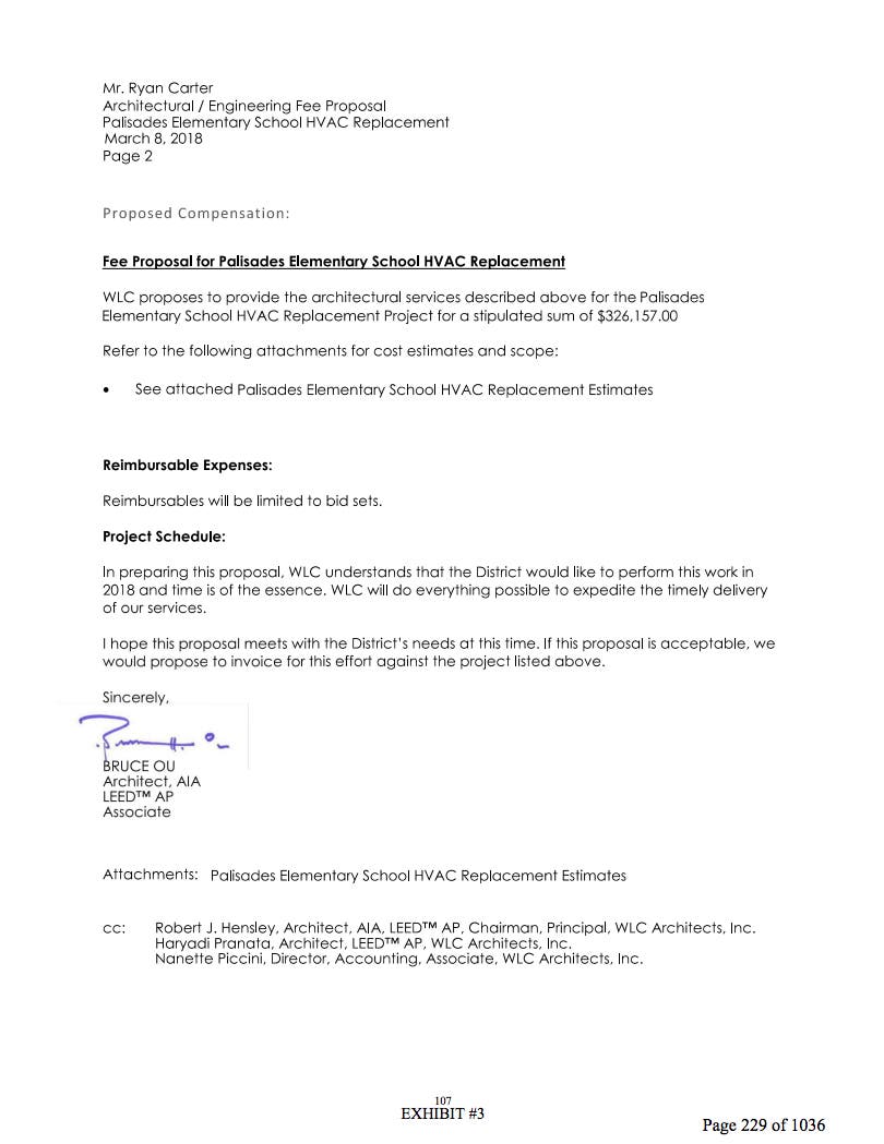 Board Agenda at page 229 Fee Proposal for Palisades Elementary School HVAC Replacement states $326,157.00
