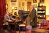 The richly appointed set looks and feels like a living room, right down to the real fish tank and the crossed swords above the hearth.