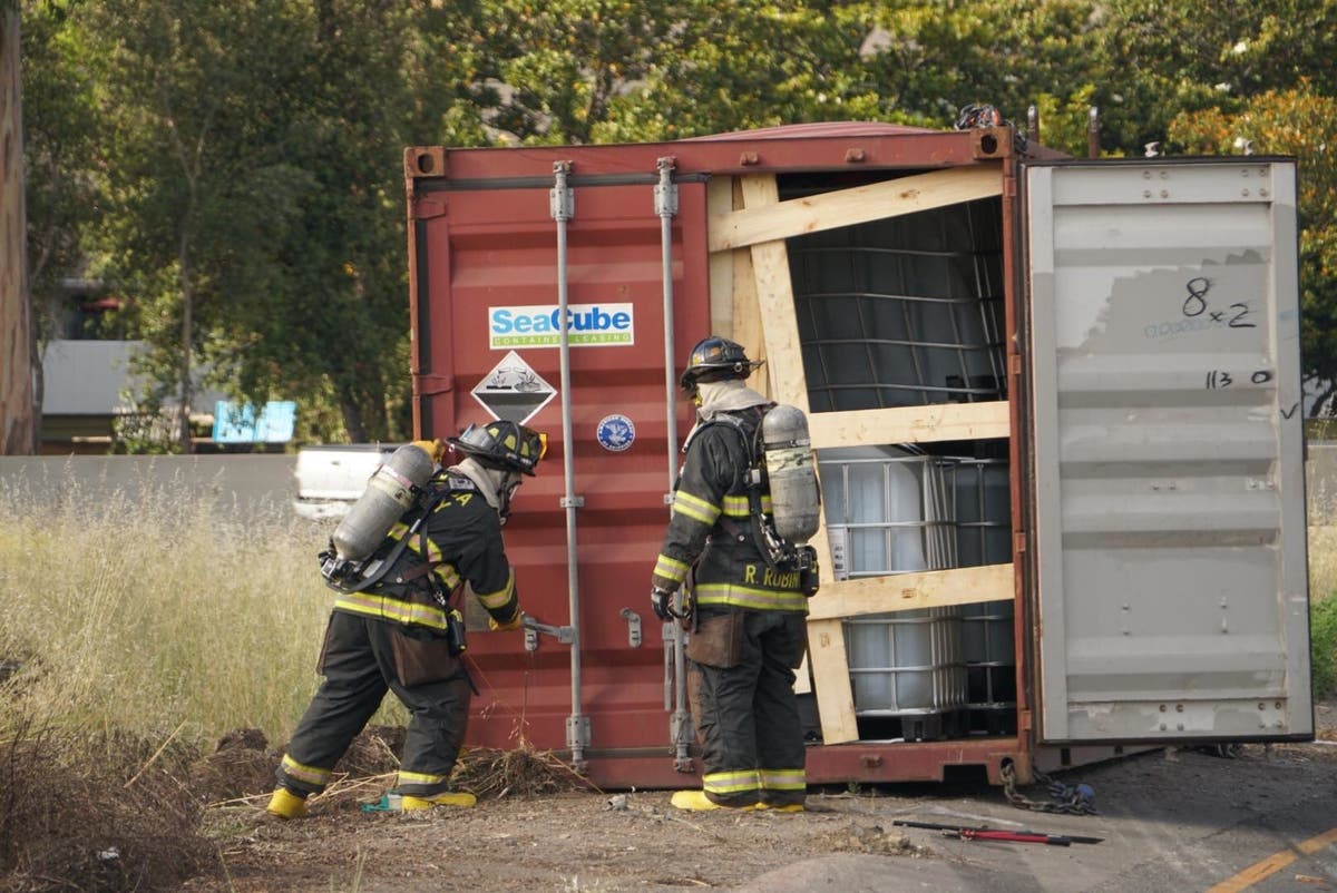 The crash was first reported just after 11:20 a.m. Wednesday on the ramp. About 500 gallons of acid leaked from inside plastic containers on the big-rig, according to Alameda County fire officials. According to Alameda County fire Capt. Matt Portteus, about 300 gallons of acid went into the dirt. Crews worked for hours to clean up the spill Wednesday and early this morning.
