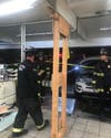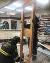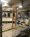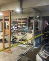 Crews installed a "timber spot" to stabilize the store at 1240 Manor Blvd due to the structural damage sustained in the Sunday incident logged at 10:38 p.m.