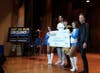Students from McClymonds High School in West Oakland along with the winning student from Skyline High School both had spoken word poems. The winning Skyline student, who took home a $1,500 prize, closed her poem to loud cheers, reiterating the Warriors theme of the day. Bullying wouldn’t be accepted, she said, “Not in our school, not in our town and most definitely not on our ground.”