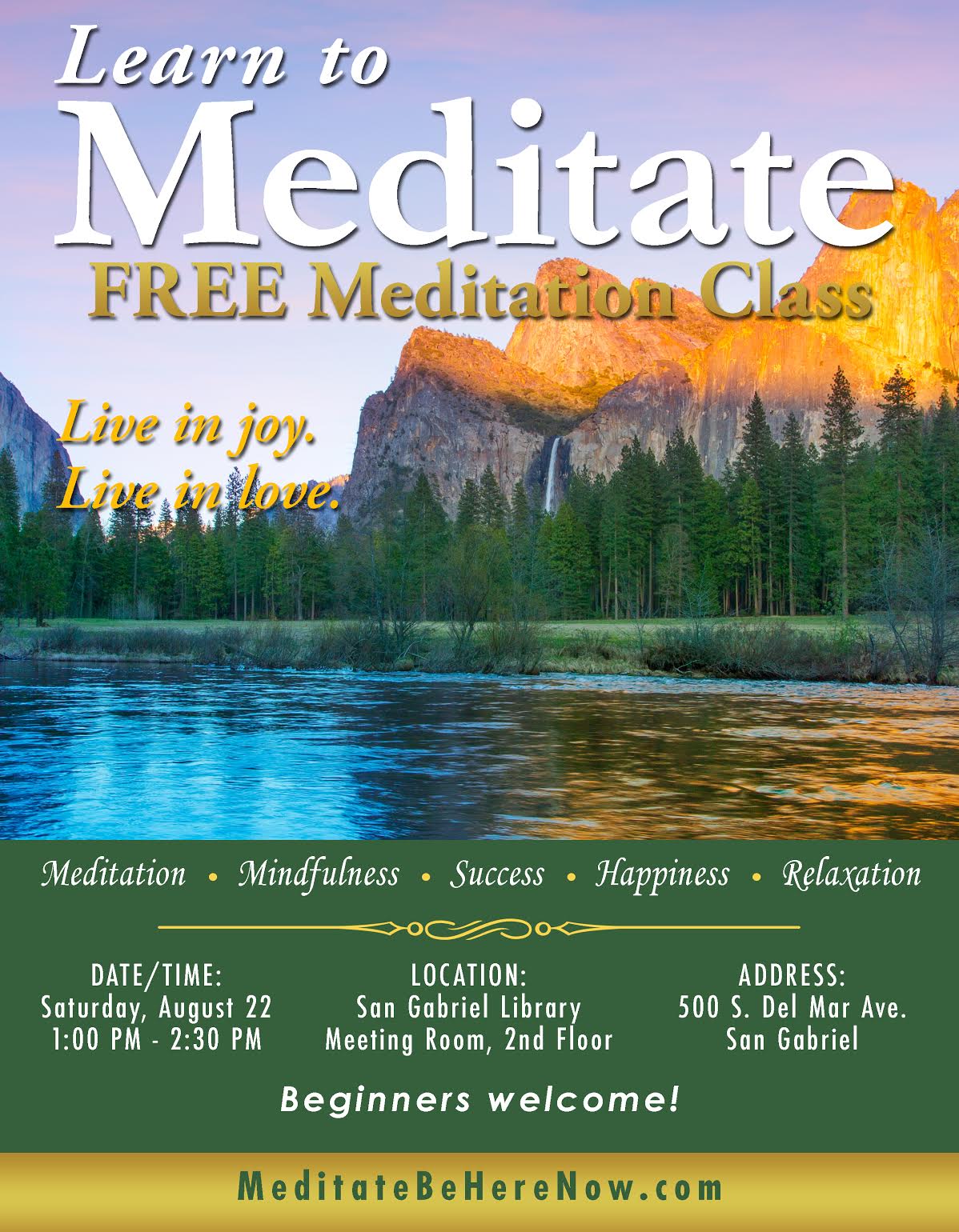 Learn to Meditate! Live in Joy. Live in Love.