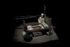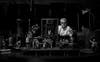 Some figures are in glass cases, others in handcrafted displays and still others arranged under fine product lighting on a multi-layered stage. The figures toward the back of the stage are almost completely in shadow. The intricate sculptures have human and not-so-human features, wear handmade clothing and possess movable limbs, jaws and even (for some of them) eyelids.