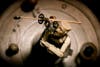 Frame uses wood and found objects to create his figures. He is a fan of the online auction site eBay, through which he bought many of the parts he needed for this project, including 19th-century glass dolls'-eyes that give so many of his sculptures a disconcertingly lifelike appearance.