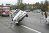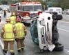 South Pasadena rescue personnel (paramedics and fire fighters) arrived on the scene of the overturned vehicle around 7:45 a.m., and treated the woman who was already removed from her car.