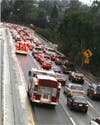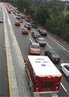 A morning rush hour accident sent a woman to the hospital and tied up traffic for miles on Arroyo Seco Parkway.