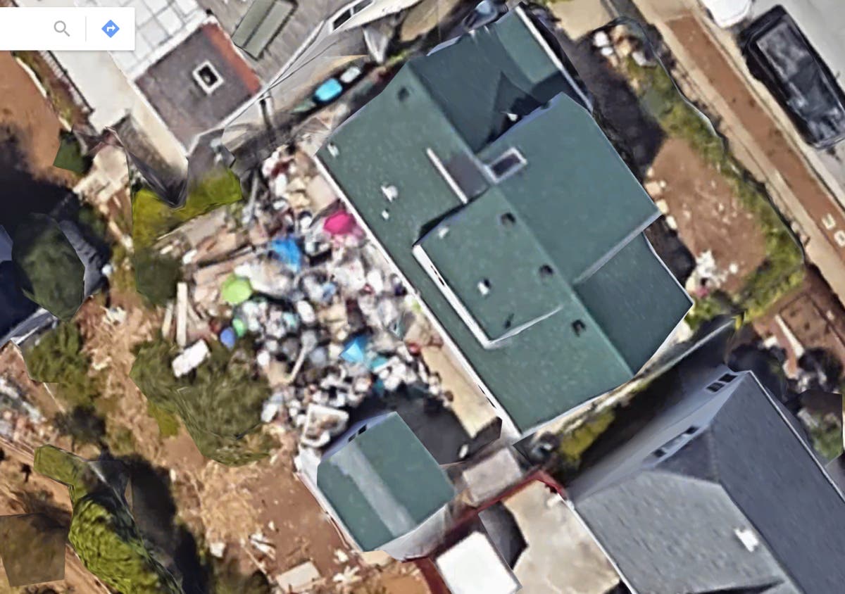 Aerial images from Google showed the possible hoarding conditions prior to the fire, with several bags of goods visible throughout the backyard.