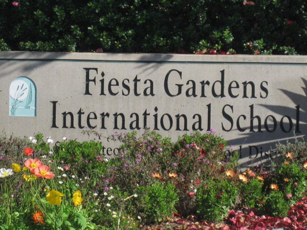 Fiesta Gardens is a kindergarten-through-fifth grade Spanish-English language immersion school, where students are initially taught primarily in Spanish, then English is progressively introduced until it is used in half the lessons by fifth grade.