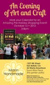 Mark your calendar for our pre-holiday shopping event, featuring the work of North Bay artisans. Expect a lively evening under the stars and find an amazing array of one-of-a-kind offerings, including jewelry, textiles, functional works of art and more!