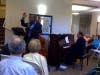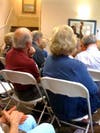 The event started at 5:30 p.m. with wine and cheese, plus Aegis staff passing trays of roast beef sandwiches and other hors d'oeuvres. Browning said that she had been wanting to ramp up the attendance of Aegis Presents, and by my count of at least 125 occupied folding chairs set up in the reception area, and many people standing, I'd say mission accomplished.