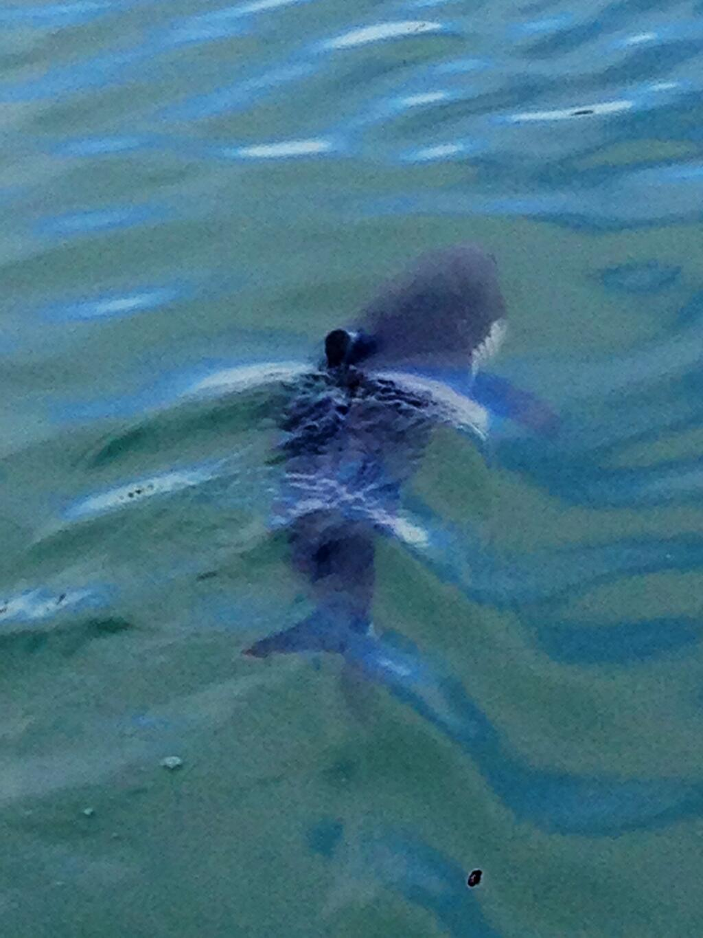 Maybe its Shark Week but a recent tweeting at Pier 39 San Francisco has been raising questions about the identification of a local shark. The shark in question was sighted swimming in the Bay and has been tweeted as a Great White Shark. In a film we produced for the Aquarium of the Bay, City of the Shark we discuss white sharks in the Bay and again in our new shark film Swim for Sharks. Great White Sharks do indeed visit the Bay. (heretofore known as white sharks- because as Dr. John McCosker observes, they need no superlatives) In 2010 Stanford's Tagging of Pacific Predators (TOPP) recorded four individual tagged adult white sharks inside the San Francisco Bay, with one shark returning the following year. The tags send out a signal that is recorded on receivers located around the Bay to detect salmon, sturgeon and other tagged fish such as sharks who happen to swim past. The white sharks in question stayed around the front of the Bay and exited without significant duration. Dolphin club swimmers frequently ask about sharks and with good reason since we swim these waters year round. Although we share these waters with the occasional white shark, there are many other species that are far more common.