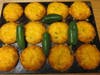 What makes ‘em so good? First, they’re hefty — each is a full seven ounces of dough. Just-gritty-enough cornmeal is the basis of a mildly sweet batter made without eggs (the moistness is impressive, given that fact). Before being baked, the muffins are chunked with diced fresh green jalapenos, filled with thick dollops of cream cheese, then topped with tangy cheddar cheese.