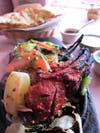 At Lotus, racks of lamb — approximately six chops to an order ($22.99) — are steeped for nearly two days in a mildly spiced, sumptuously flavored yogurt-based marinade. After being threaded on skewers, they’re lowered into a tandoori oven. Near-volcanic temperatures of 700-degrees Farenheit from the enclosed coals instantly sear the edges of the meat to a caramel-blackened char while keeping the interior insanely juicy and tender.