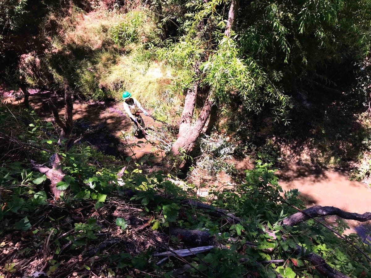 Photo: County Public Works collaborated with the Conservation Corps North Bay to remove fallen trees that were blocking flow in Warner Creek, a tributary to Novato Creek. Photo via County of Marin