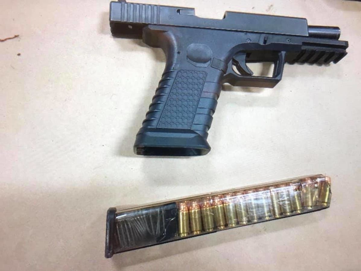 The suspect eventually was stopped and handcuffed. Recovered from the cinch bag, according to the department, was a loaded .40-caliber firearm with no serial numbers.