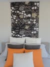 Many of the accent items inside the home and on the decks were selected and supplied by HabitatDesign.com, which also worked on the landscaping plans.