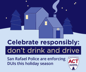 As you prepare for the holiday celebration season & approach the New Year, San Rafael Police Department's Alcohol Compliance Team (SR ACT) wants to remind you and your loved ones to be mindful! San Rafael ACT is currently implementing effective enforcement activities that decrease the problems associated with excessive drinking. They are strictly enforcing underage drinking laws in local establishments and at house parties through bar walk-thrus, minor decoy operations and party patrols. They are also keeping our streets safe by actively enforcing DUIs through DUI checkpoints and DUI patrols.