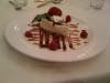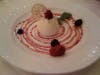 The center tastes like a strong bite of lemon rind and with sharp jolt of booze. On the plate you will find squiggles of fruit puree and a few raspberries. Luscious and light. The pronounced lemon flavor cuts any olive oil previously consumed.