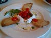The pizzas at Bistro Ginolina are made with either wheat or white dough. We ordered pizza con gorgonzola ($13.50). It is about 12 inches in diameter and could serve three or four as a starter. Slices of prosciutto blanketed the thin pizza crust, which had first been slathered with gorgonzola and then layered with paper thin slices of pears. The center of the pizza was a bit undercooked though the crust edges were great. The combination of the thick salty prosciutto with the gorgonzola was a little too, well, salty. So this dish was slightly disappointing.