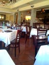 Bistro Ginolina looks like it could be in Rome, with dark wood chairs, banquettes and ladder back bar stools complementing the luminous yellow-painted walls. Floors are large red tiles setting off square mosaic-tile columns separating the bar from the dining room.