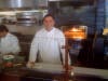 In the dining room, square tables topped with white linens are set point-to-point in two rows from front to back of the restaurant. Overhead are three marvelous amber chandeliers from the tiny Venetian island, Murano.