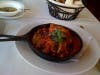 I always like the idea of eggplant parmesan but in most restaurants this dish is overweight. Typically it's laden with way too much gooey cheese and the eggplant itself is greasy. This presentation comes in a small cast iron pan and is surprisingly light. It's easy on the cheese so the eggplant flavor really comes through with a wonderful rich and thick tomato sauce.