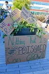 The demonstration included the throwing away of many plants Urban Tilth members say have been contaminated by the smoke and are not safe to eat.