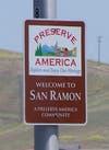 The sign has a pretty logo on top for a company or organization called Preserve America and the sign reads, “Welcome to San Ramon, a Preserve America Community.”
