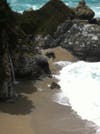 THIS time there was a strong headwind. I was pedaling, pedaling and pedaling and not moving very quickly. I was beginning to feel like a fish swimming upstream. Or like I was slogging through Jell-o while cars whizzed by me. There was not much wiggle room riding UP the coast, no shoulder, just sandy hillsides.