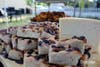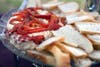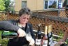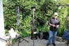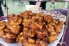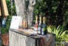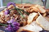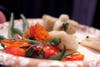 We were happily treated to a selection of hors d’oeuvres consisting of brie wrapped in a mouth-watering crust, light, flaky crackers, toasted bread with an array of dips, strawberries dripping with juice, and velvety chocolate mousse in chocolate tuxedos. We enjoyed the outdoor ambiance and the guitar music and vocals of Roger Kardinal.
