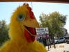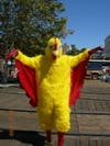 Well, the pair of them were approaching Troy who again did his shy, timid wave as they walked by. Ryan and Dan did not respond. Troy the Chicken then passed them by but immediately turned around so he was directly behind them. In fact, his rubber beak was nearly touching the backs of their heads. He tapped them with his beak. They turned around and looked at him. They were not amused and chose to ignore Troy the Chicken and continue walking. Troy then pecked at them again and when they turned he gracefully flapped his furry "wings." Again, no response other than looking very irritated.