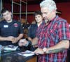 Fieri posed for photos with employees, autographed books and shook their hands. One staff member told him that she hopes to apply for the show The Next Food Network Star next season. That's the same show that Fieri won, setting his first cooking show in motion. He encouraged her, gave her tips and offered to look at her audition tape.