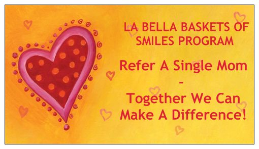 This is a special program created and launched by La Bella Baskets in December of 2009. We believe every gift has a purpose, and our purpose is to give back. This is why we have chosen to give to single moms nationwide. We understand the hardships and challenges single moms go through every single day, and we want them to know that we do care about them. Our mission through this program is to empower and uplift women while helping them feel beautiful, important, and cared for.