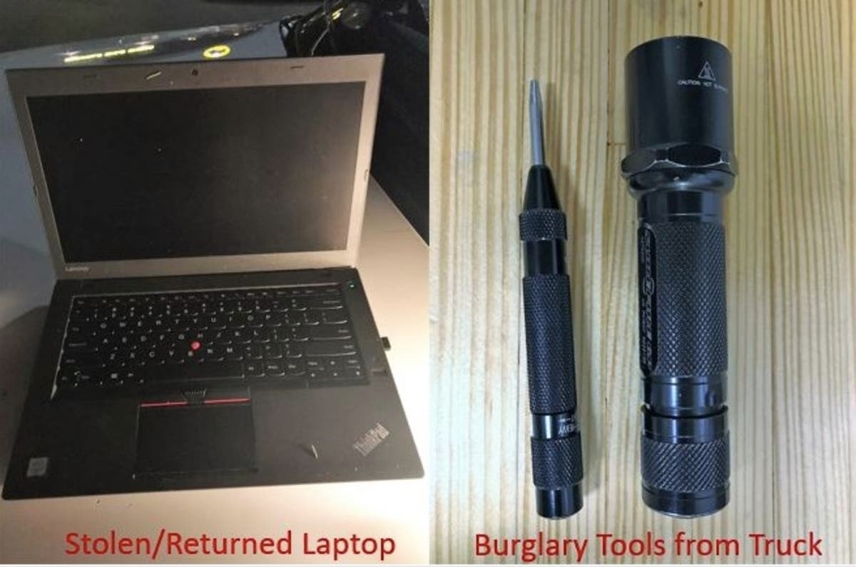 Officers said they recovered thousands of dollars worth of stolen property, including a laptop computer.