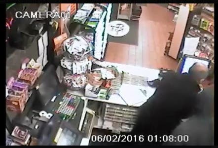 During the video, the male suspect can be heard repeatedly telling the cashier to "open the cash register."