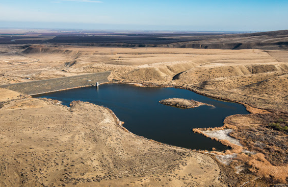 Photo: View of Little Panoche Reservoir and Dam in February 2014 during the California drought. (Photo: Florence Low)