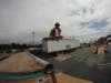 Saturday morning Rocky Romano and myself setup the mobile skate park while the weather was bearing down on us. We finished drilling in the last screw and barely made it to begin setting up the movie part of the Mavericks Awards before the torrential downpour began.