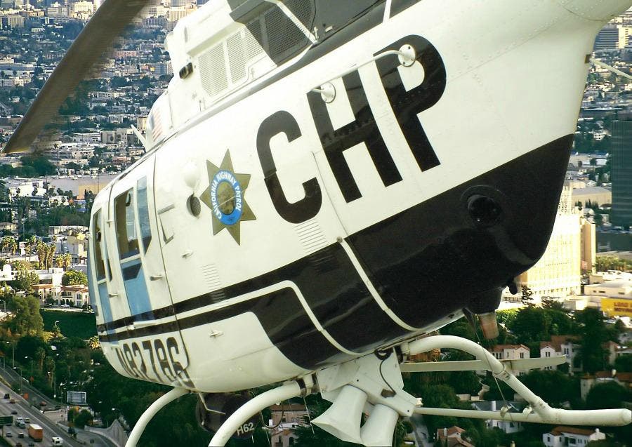 The CHP's H-32 helicopter crew was requested by Cal Fire in Felton around 4:45 p.m. to assist with the rescue of a 19-year-old man who had fallen 30-40 feet from a cliff onto rocks in the San Lorenzo River.