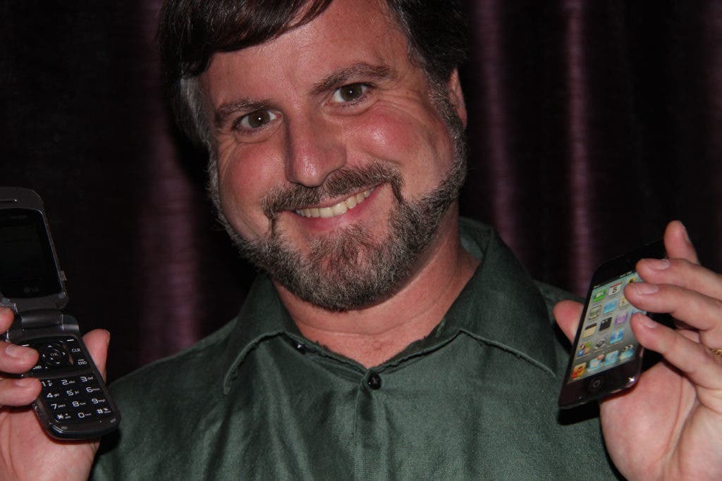 To illustrate, Padula, a proud self-described geek, pulls out a phone from each pocket. One is an old flip top; the other, the iPhone.