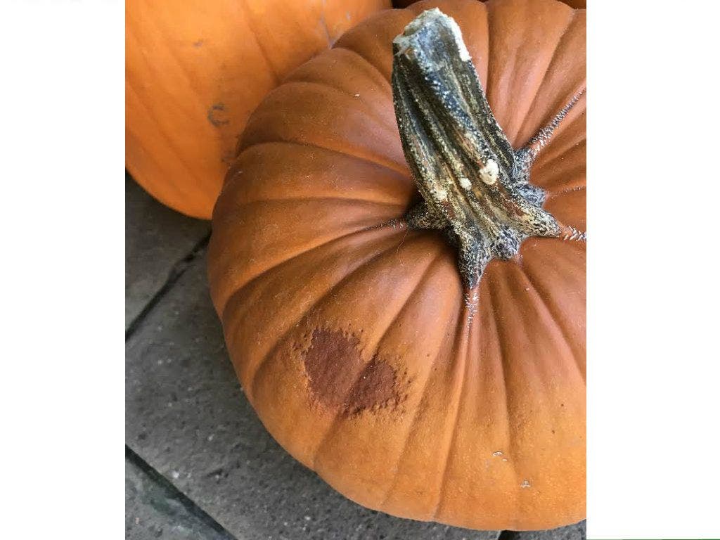 Patch reader Christine Magnin couldn't help but notice the unusual mark on her holiday gourd! "My pumpkin was 'born' with a heart birthmark," she writes.