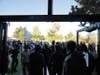 The bulk of the crowd gathered on the front lawn of the bank and stood face to face with over two dozen shield and baton wielding members of the Santa Cruz Police.