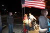 Police left the scene just before 8 p.m., as about 40 demonstrators danced around a giant public address speaker in the bank parking lot.