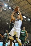 The Warriors used that defense during their final run that was kicked off by a breathtaking up and under layup from Leslie, who finished with 17 points and 14 rebounds. Leslie then stole the ball and started the fast break that was finished at the rim by Hobson, who had with 14 points.