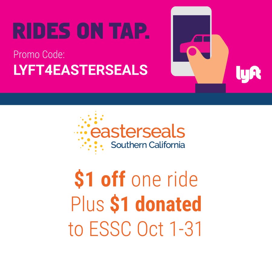 LOS ANGELES, CA – Lyft has partnered with Easterseals Southern California (ESSC), which assists more than 10,000 people with disabilities, for an October fundraiser. If you take a Lyft ride any time in October and enter the code LYFT4EASTERSEALS into the “Promos” section of your app, you'll receive $1 off your ride plus $1 will be donated to ESSC to support services for people with disabilities.