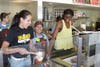 Los Angeles Sparks guard Ticha Penicheiro and forward DeLisha Milton-Jones visited on Wednesday afternoon, giving away free Sparks swag and helping make smoothies. The WNBA players also signed autographs for fans.