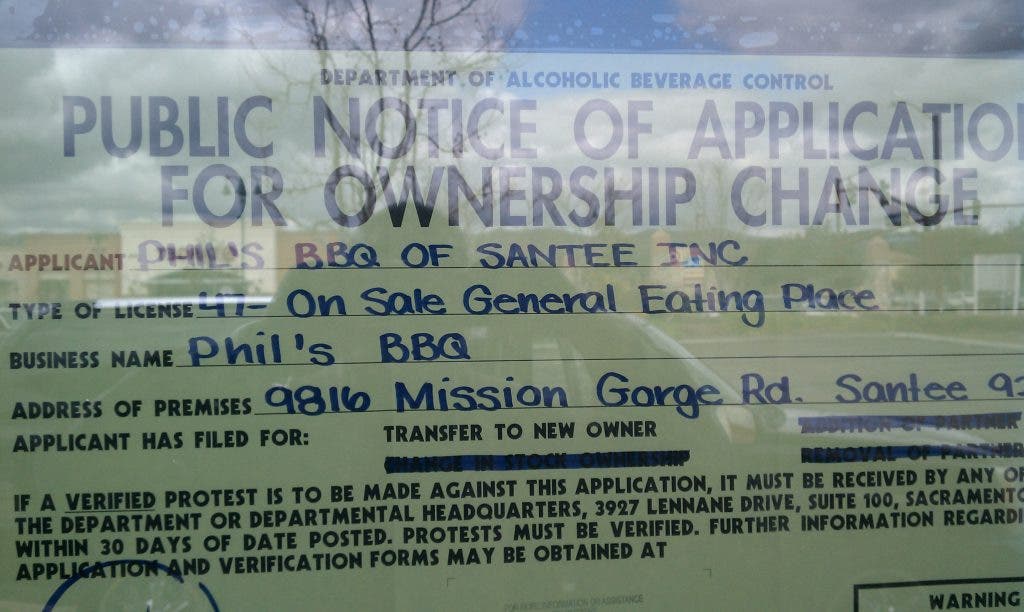 A "Notice of Application to Sell Alcohol" in the name of Phil's BBQ of Santee recently appeared on what used to be the Original Roadhouse Grill building at Trolley Square in Santee, further evidence of their intention to open a new restaurant in town.