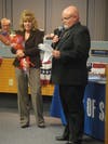 was re-elected to the Council with 7,913 votes. He also thanked his supporters, including his brother, whom he gave a Council pin to.