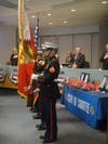 The packed room was decked in patriotic colors. American flags draped the walls, columns and Council dais. Red and silver balloons hung in the air.