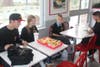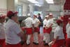 A group of teens that had been waiting at the doors of the new fast food outlet since 10 p.m. the night before were the first customers to eat there, shortly followed by members of the Santee Chamber of Commerce and other hungry locals.